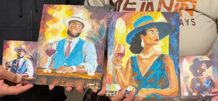A glimpse of the creativity of Freedom Reads Assistant Controller, Teryn Jasmin — masterpieces from a recent paint-and-sip party.